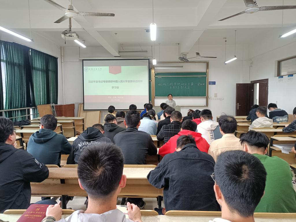在机械楼413教室组织开展了习近平总书记考察中国人民大学重要讲话精神学习会,支部党员参加了学习会,学习会由支部书记张敏主持。