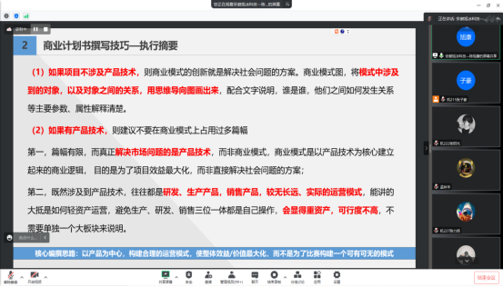 自1月起,已通过线上线下的方式,开展了3场“互联网+”大赛培训会,分别邀请在去年“互联网+”大赛中获得国家级铜奖的陈旭康、刘宇欣、吴金龙主讲。