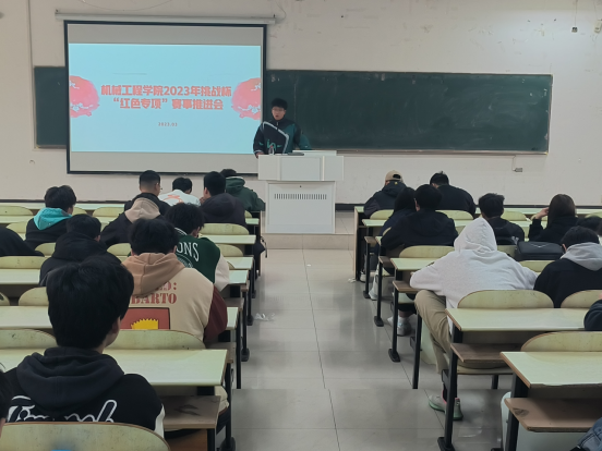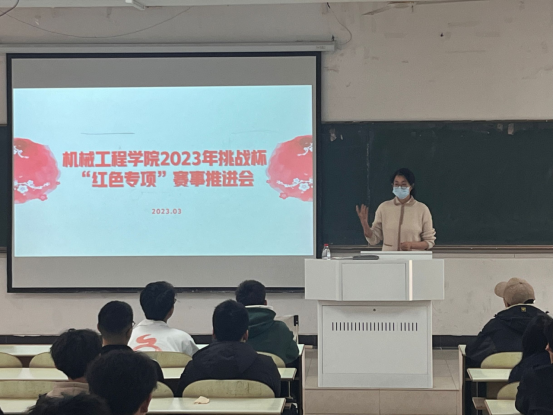 为持续激发机械学子爱党爱国爱社会主义的热情,厚植家国情怀,涵养进取品格,3月27日下午,机械学院于佳山校区教三南103教室召开2023年挑战杯“红色专项”赛事推进会,会议由院团委书记费白露主持,部分红色专项团队参加此次会议。