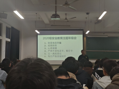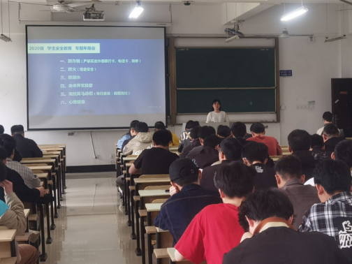 开展2020级学生安全教育专题年级会,会议由20级辅导员汪辉和陈洁主持,全体20级学生参加会议。