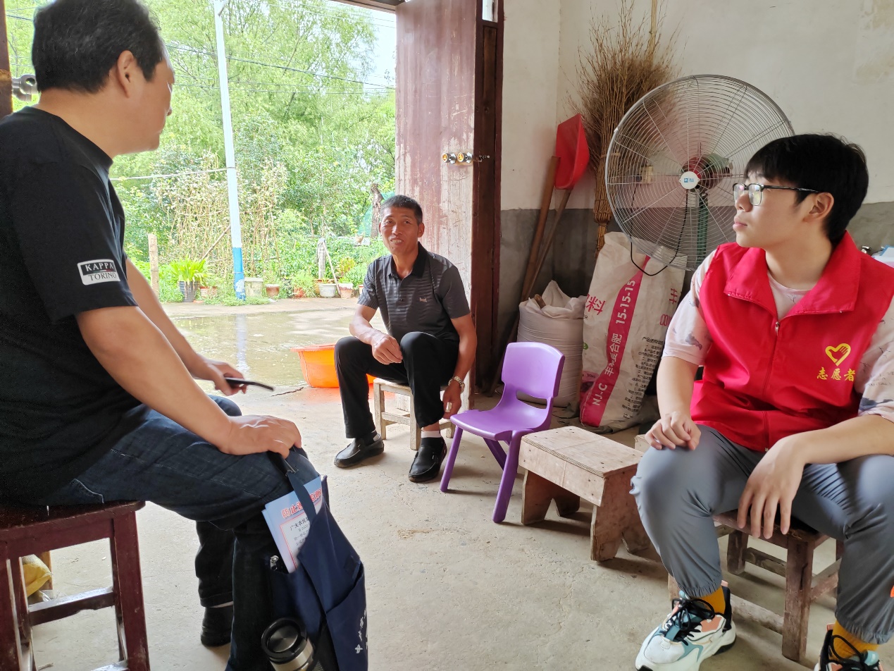 图为实践队员和村委一同走访当地村民家中了解情况