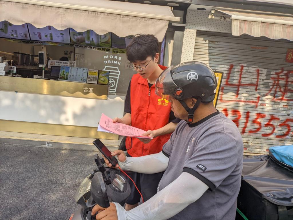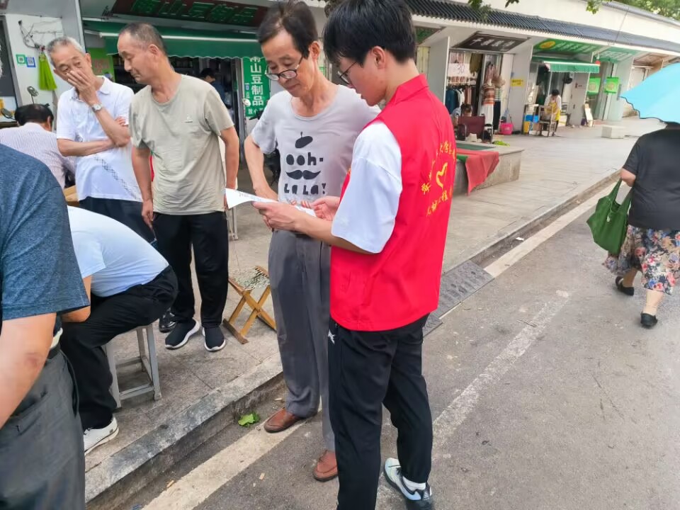 实践队员向社区附近户外商贩、门卫的户外工作者及聚集在一起下棋娱乐的老年人宣传了高温防中暑知识,提醒高温天气应减少户外活动、注意补充水分,如因工作原因,不得不室外工作,一定要及时关注自己呼吸、心脏状况,如呼吸急促困难,应及时向拨打急救电话,或向临近商家求助,坚持安全第一。(撰稿:费白露 审核:李克明)