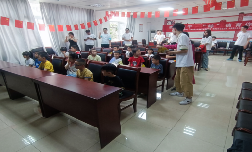 图为实践队成员发放奖品
