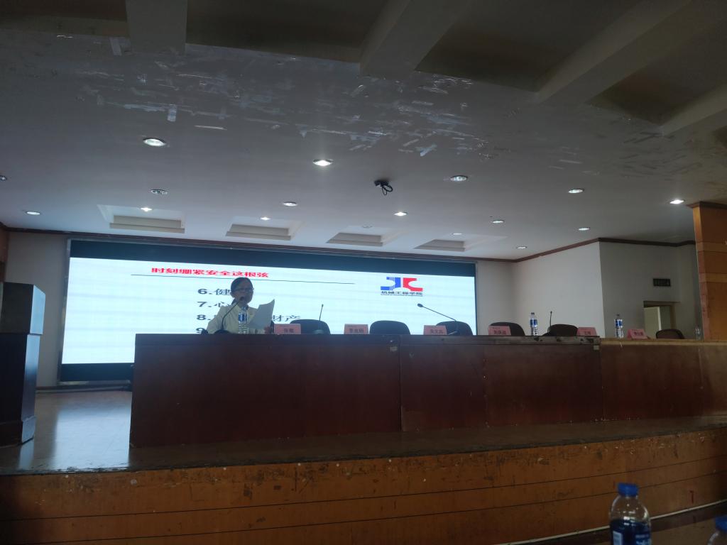 大会上,张敏围绕即将开展的军训,向同学们强调了军训期间的安全问题,嘱咐新生遵守军训的各项规定,做好防暑工作,注意补充水分,注意饮食作息,提前备用水壶、防晒霜、纸巾、药品等用品;避免过度运动导致受伤,身体如有特殊情况或者感到不适,要及时跟教官和辅导员反映,不要强撑以免让自己的身体受到更严重的伤害;增强纪律意识,遵守校规校纪,遵守军训参训人员管理规定,展现机械风采。