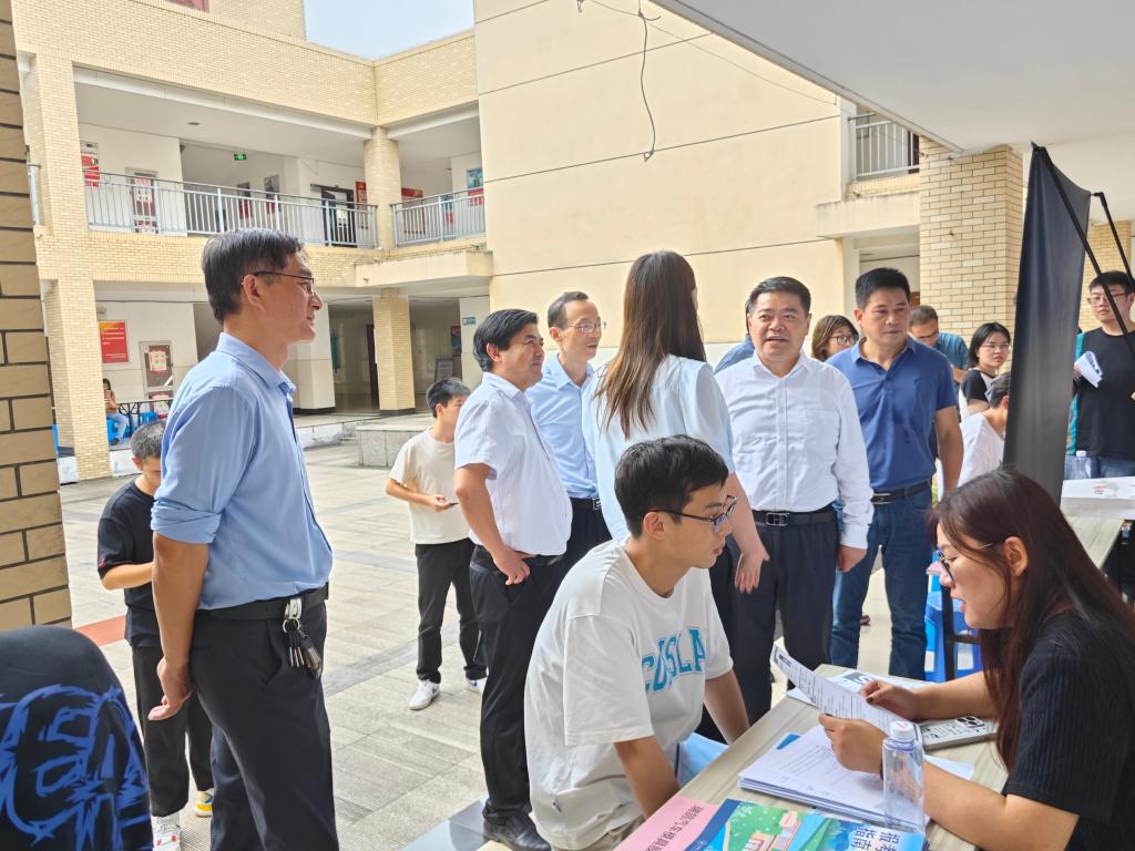 大学生就业工作高质量发展。招聘会上,陆林与企业招聘人员广泛交流,了解企业发展情况、招聘需求以及现场大学生应聘情况。陆林鼓励应届毕业生要结合专业特点和职业规划主动与用人单位沟通,积极求职,高质量就业,并对学院组织宣传工作给予肯定,对招聘效果给予高度认可。