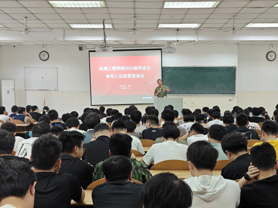 邀请校征兵工作站嵇虎老师召开2024届毕业生参军入伍政策宣讲会,全体毕业生参加。