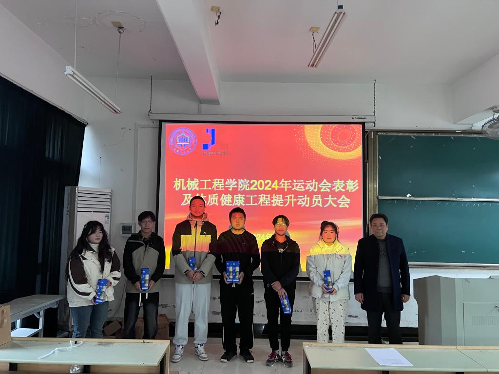 在机械楼405室召开2024年校运动会表彰及学生体质健康提升动员大会,学院党委副书记陈庆林主持会议,各年级辅导员、各班级体育委员及院学生会体育部负责人参加会议。