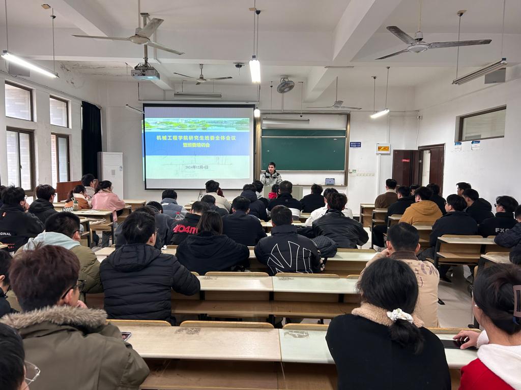 在机械楼403教室召开研究生班委全体会议暨班委培训会,会议由石亚飞主持,全体研究生班委参加会议。
