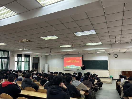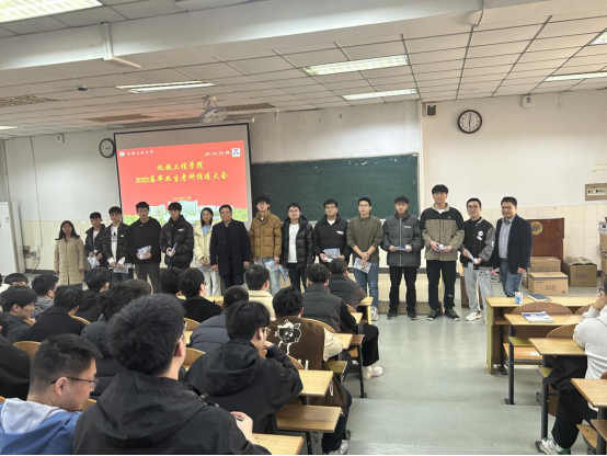 在东阶201召开2025届毕业生考研鼓劲大会,毕业班辅导员董春辉、毕苗及2025届全体考研学生参加。