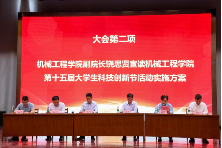 院长刘庆运致开幕辞,代表学院向长期以来关心和支持学院科技创新、文体工作发展的各级领导、老师、社会各界人士表示衷心感谢,向工作人员致以问候。他指出,科技创新作为支撑国家崛起的筋骨,贯穿于中国式现代化进程的全过程,始终发挥着不可替代的作用。他结合学院教授团队近期取得的重大学术科研成果,强调学院连续15年举办科技创新节初衷就是传承科学精神,弘扬创新风尚,涵养优良学风,勇攀科研高峰。他向大会通报了机械学子在上一年科技创新中取得的优异成绩,指出大学生作为新时代的青年力量,肩负着探索科学奥秘、推动技术进步的重任,勉励全院学生在纵向深化中夯实数理根基,在横向贯通中培育交叉思维,在时空延伸中树立时代眼光,以敢为人先的锐气、上下求索的执着、十年磨一剑的定力,将批判性思维化作探索利刃,让终身学习成为成长基因,使创新意识融为精神底色,在新质生产力的发展蓝图中镌刻属于青年一代的奋斗印记。