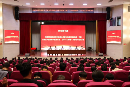 第十五届大学生科技创新节暨第十届“飞young·青春”大学生文化节在秀山校区大学生活动中心隆重开幕,学院领导班子出席开幕式,学院各系主任、全体辅导员、各年级学生代表400余人参加开幕式。