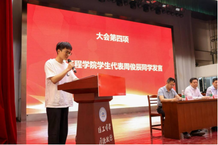 第十届“飞young·青春”大学生文化节活动实施方案》。学生代表周俊辰在发言中分享了自己参加学科竞赛的经历、收获与感受,要积极主动、不畏失败、敢于拼搏、善于合作,并对学院营造浓厚的科创氛围和老师们的辛勤付出和悉心指导表示感谢。教师代表王涛在发言中谈了自己对大学生科技创新的理解和感悟,鼓励同学们要勤于学习、善于思考、勇于实践、敢于创新,为国家的科技进步贡献青春力量。