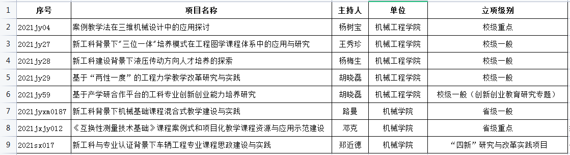 好色网 2021年教改项目一览表