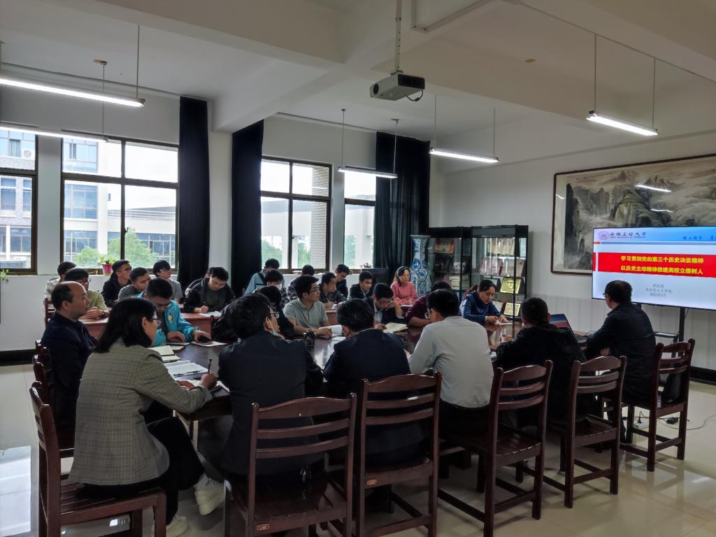邀请校党委讲师团成员、马克思主义学院倪松根副教授来学院开展了一场主题为《学习贯彻党的第三个历史决议精神 以历史主动精神推进高校立德树人》的专题报告。学院党委委员、纪委委员、师生党支部支委委员在机械楼302进行了学习,专题报告会由学院党委书记徐柳根主持。