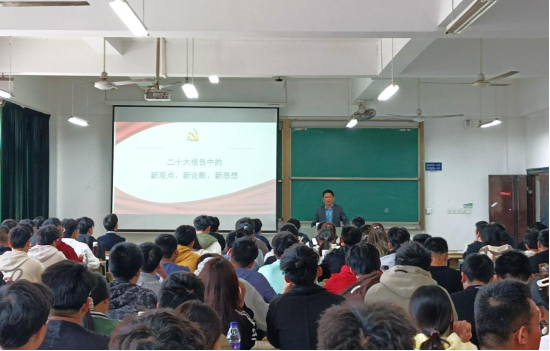 吴文兵重点围绕党的二十大的时代背景、大会主题、过去五年的工作和新时代十年的伟大变革、马克思主义中国化时代化新境界、新时代新征程中国共产党的使命任务、新时代党的建设新的伟大工程等内容,同时结合学院事业发展、大学生成长成才规律和大学生思想行为特点等方面,详细、深入地解读了党的二十大提出的一系列新观点、新论断、新思想,使同学们能够更加深入地领悟党的二十大精神。