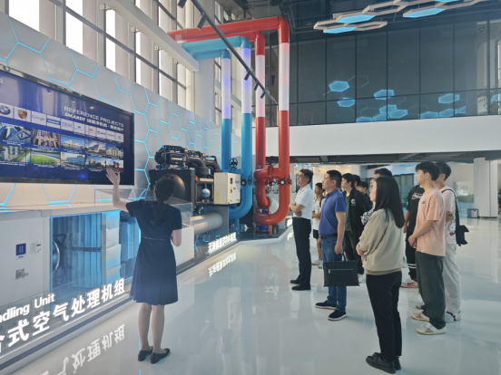 在天加接待组讲解员的带领下,学生党员们先后参观了天加能源和天加环境两个园区的展厅实验室和智能化制造生产线,了解天加好色网、技术研发、一线车间、数字化生产等内容。参观过程中,同学们频频表示现代化工厂与传统机械工厂完全不同,感叹中国智造的强大力量,由衷的为我们祖国的发展壮大感到自豪。刘庆运勉励大家,中国智造的重担落在你们新青年的肩上,打破技术壁垒,实现科技跃进,行业的希望在于你们,所以大家一定要努力学习专业知识,精研创新,将来为行业注入新的活力。