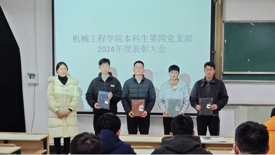 本科生第四党支部于机械楼405召开了2024年度表彰大会,会议由党支部书记濮莹萍主持,支部全体党员参加大会。