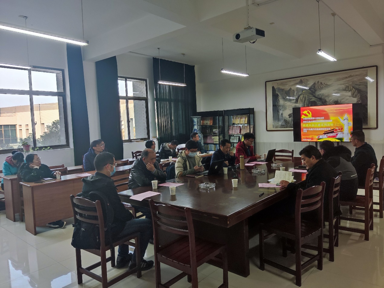 会上,李克明副书记首先领学了党的十九届六中全会精神以及中共中央关于党的百年奋斗重大成就和历史经验的决议。然后,丁克勤书记畅谈了党的十九届六中全会会议精神学习体会,谈到了“开拓创新和自我革命”对科研人员启发的重要意义。随后,针对党的十九届六中全会精神的学习心得与体会,两个支部党员线上线下展开了热烈讨论。最后,徐柳根做会议总结,对此次党建共创共建活动给予了充分肯定。