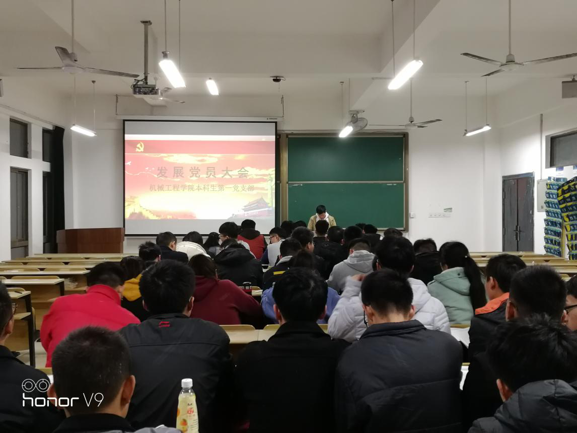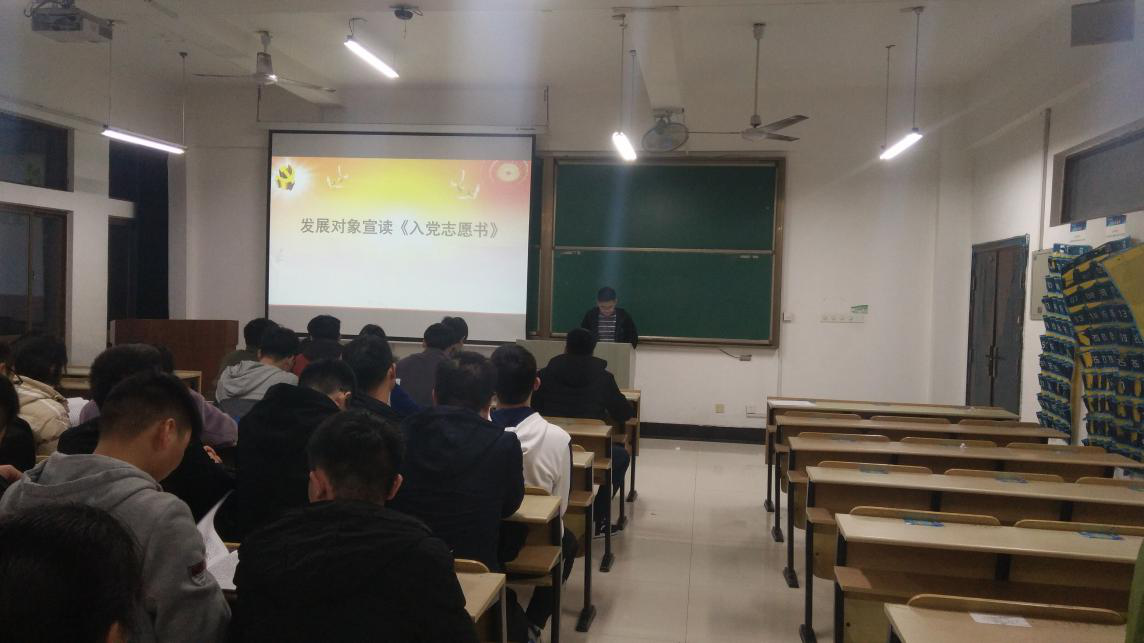 2018年11月26日好色网 本科生第一党支部在机械楼407教室召开了入党积极分子发展为中共预备党员大会,该会议由本科生第一党支部书记章军同志主持召开,本科生第一党支部的正式党员及预备党员参加了此次会议。