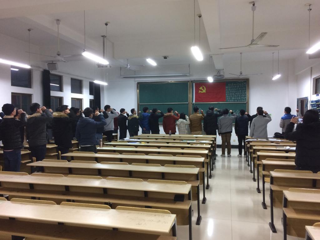 最后,全体党员起立对着党旗宣读入党誓词,支部书记王琴老师对此次支部大会进行了总结,表示此次支部大会不仅壮大了支部党员队伍,也给党组织注入了新鲜血液。希望大家加入党组织后能够不忘初心,牢记使命,继续加强理论学习,在生活中发挥自身的优良品质,发挥党员的先锋模范作用。