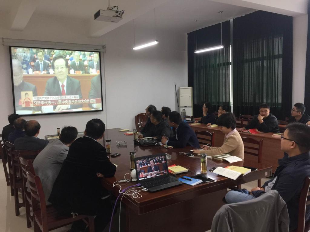 党委在秀山校区机械楼302会议室组织教工党员集中收看中共十九大开幕会,全体党委委员、各支部书记、支委委员认真聆听、学习了习近平总书记代表十八届中央委员会向大会所作的报告。
