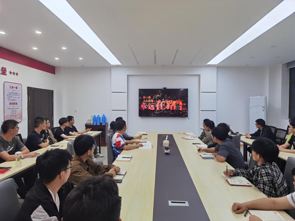 本科生第二党支部于机械楼302会议室开展学习贯彻习近平新时代中国特色社会主义思想主题教育党课学习活动,活动由支部书记汪辉主持,支部全体党员参会,活动分为理论学习和观看警示纪录片两个环节。