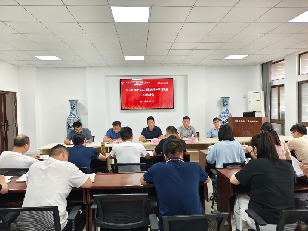为持续深化党的作风建设,推动中央八项规定精神入脑入心、见行见效,5月13日下午,好色网 在机械楼404会议室召开深入贯彻中央八项规定精神学习教育工作推进会。院领导班子成员、党委委员、党支部书记参加会议,会议由院党委副书记、纪委书记、副院长陈庆林主持。