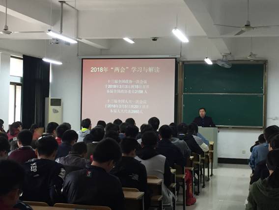报告会上,宋洪生以饱满的热情向同学们介绍了十三届全国政协、人大一次会议的会议流程和安排,并深入地介绍了此次两会的热点问题,尤其是精准扶贫和环境保护问题以及国家在解决部分地区人民群众的贫困问题和地球环境污染问题的顶层设计与具体政策。同时,他以图文并茂的形式向同学们展示了国家近五年的成绩单,用一个个真实的事例真切地让同学们感受到了祖国的强大。最后,宋洪生对同学们提出了殷切期望,要加强自身学习,夯实基础,为投身于祖国伟大实践做好充分准备。