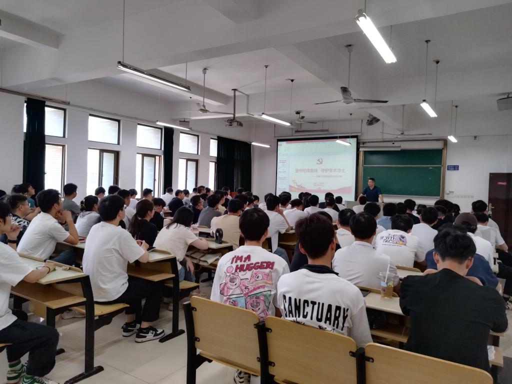 郑近德结合真实案例阐述了一些学术失信行为以及带来的严重后果与不良影响,向研究生们强调了恪守学术诚信对于个人与社会的重要性,他结合日常的科研工作以及校训、院训精神向大家提出了六点希望:一要坚守学术诚信,不篡改、捏造或删除研究数据,按照有关规定正确引用和应用他人的研究成果;二要恪守法律法规,不伪造欺骗、抄袭剽窃、弄虚作假,增强保密意识,消除泄密隐患;三要遵守学术规则,避免一稿多投、投机取巧和违规悖理;四要客观评价他人成果,发扬合理的批判精神;五要倡导诚信风气,营造风清气正的学术风尚;六要勇于承认错误或失误,以合理的方式纠正和解决出现的错误或失误。