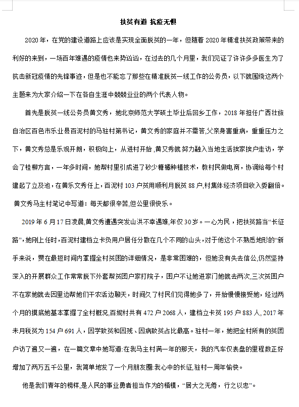院团委、团支部积极宣传和动员之下,每位同学都知晓并积极参与了活动,报送各类作品65件。其中,教师张敏的《一名辅导员的奋斗梦》、车181班涂朝晖的《扶贫有道 抗疫无惧》、机187班郑镕警的《奋斗》、机工181班刘雨涵的《以书为路》的征文创作,感情真挚,文笔细腻,在众多作品中脱颖而出,被评为优秀作品,报送至校团委。
