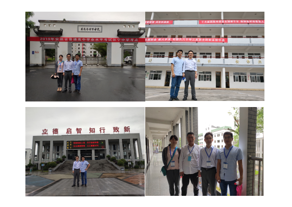 办学实力、专业特色和相关招录政策,2019年06月21-24日,我院单建华教授、胡文锋老师和周环老师三人组成的黄山市招生宣传工作组赴黄山市各区县,拜访了休宁中学、屯溪一中、歙县中学和歙县二中四所省示范高中以及地区办学实力最强的私立中学歙州学校。