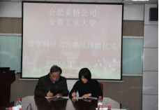 在签字挂牌仪式上,学院党委书记徐柳根介绍了学校及机械学院的基本情况,对合肥美桥和江淮重工两家企业给予学校发展的大力支持表示感谢!徐柳根指出,推进校企合作是建设高水平大学,培养高素质人才的重要环节。希望企业与学校本着互惠互利的原则,充分利用实习基地这个平台,深入开展合作,共同培养人才。