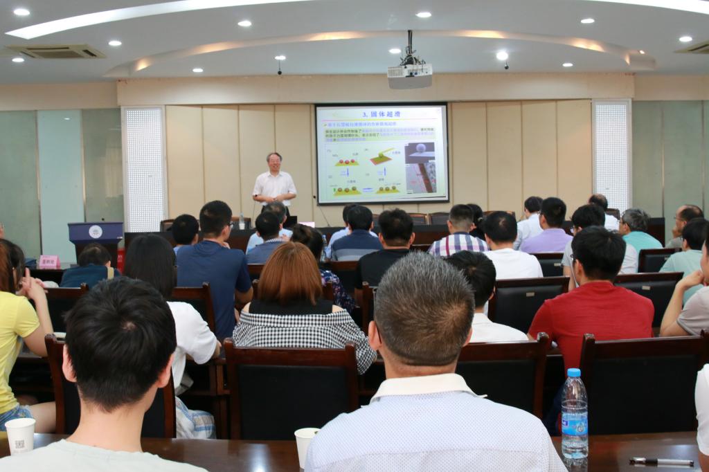 开展学术交流指导,并作了题为“超滑研究进展”的学术报告,报告会由校长魏先文主持。机械学院、材料学院、化工学院、计算机学院相关学科教师及研究生到场聆听了报告。