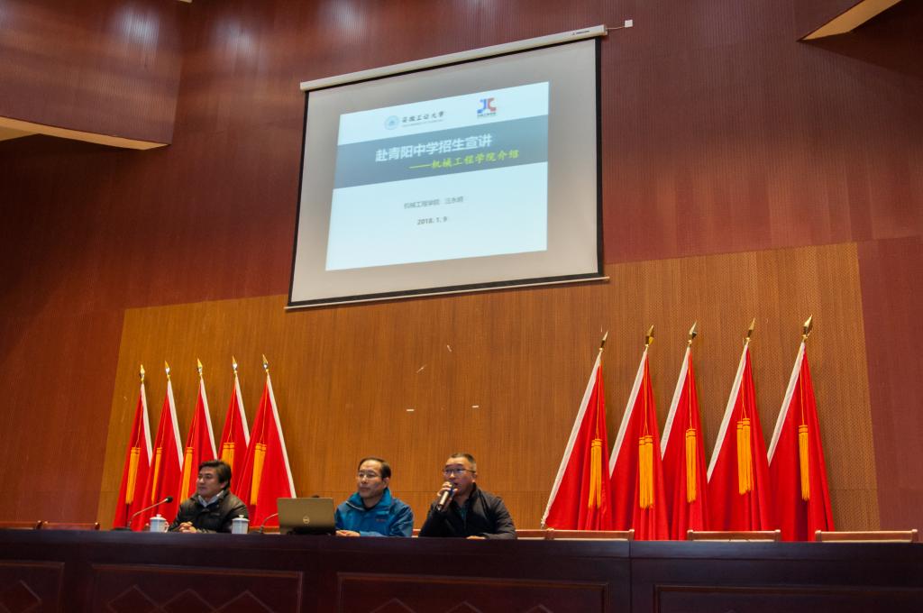 汪永明副院长、李克明副院长和机械设计系涂德浴主任三人赶赴安徽池州青阳中学进行了2018年招生宣传,青阳中学相关领导和高三级全体师生参加了宣传会。