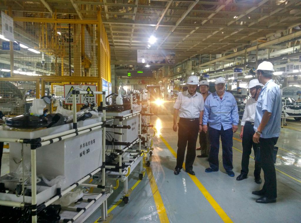 会后,学院领导在徐耀副书记和公司技术人员的陪同下,深入公司的冲压车间、焊装车间和车辆总装车间,参观了车身部件和车辆总成的加工制造与装配生产线,并就相关工艺方面存在的技术问题进行了深入探讨。