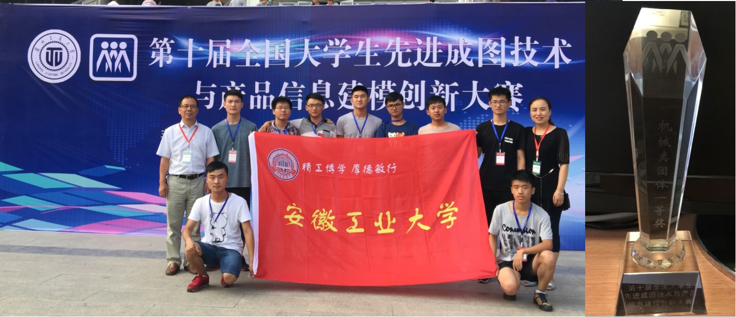 机械类团队王佳、朱瑞、华鑫斌、王琼、潘航五位同学首次荣获机械类团体一等奖;3D打印团体一等奖;王佳、朱瑞分别获得个人全能一等奖;王琼、华鑫斌、于阳分别获得个人全能二等奖和尺规绘图一等奖;周孟洋、潘航分别获得尺规绘图一等奖;吕彪强、刘正扬分别获得尺规绘图二等奖。建筑类团队周紫云等九位同学荣获建筑类团体二等奖,个人全能二等奖5项,尺规绘图一等奖5项、二等奖9项,三维建模二等奖一项。
