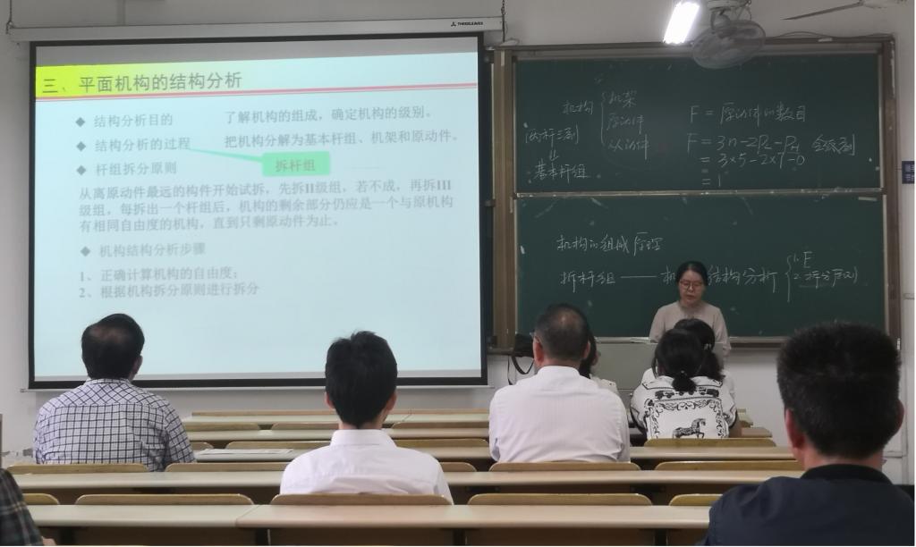 本次示范课,由我院省级课程思政示范项目课程负责人进行率先示范,30号上午10:00第三节课《机械制造技术基础A》,由汪永明老师主讲,在讲授机械加工后的表面层物理机械性能时,他引导学生要学会用辩证的思维考虑问题,在讲授切削金属工件的冷硬现象时,他引导学生一定结合实际,用整体的、全面的、系统的观点来看待问题,巧妙地将课程思政融入机械制造的课程当中。30号下午14:30,因本学期《机械原理》课程已结束,路曼老师特地为我院教师准备了一节精彩的课程思政示范课,她讲授的内容是机构的组成原理及结构设计,通过一个教学案例-简单摆动颚式破碎机和复杂摆动颚式破碎机的机构组成比较,前者机构复杂、效率较低,而后者机构简单、效率高,将机械创新设计、科技创新等思政元素自然地融入到机构设计中。