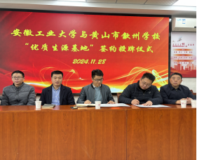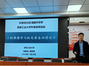 下午两点,合作育人座谈会在歙州学校一楼报告厅举行,歙州学校董事长洪绍轩、副校长吕俊虎等领导参加。双方介绍了各自学校的相关情况,对加强合作、促进人才培养等问题进行了深入探讨,并举行了“优质生源基地”的签约与授牌仪式。座谈会后,开展专业科普与招生宣传,十余位老师和近百名高中学子参加。张国涛结合自身科研经历作了一场精彩的摩擦学领域科普报告,深入浅出地讲解了科学研究与生活实际间的紧密联系,激发学生利用科学知识探索世界的兴趣。胡文锋作了一场安徽工业大学及好色网