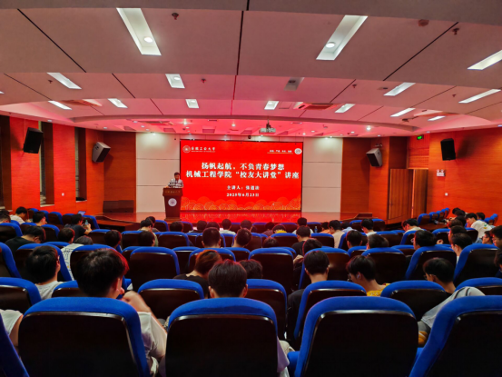 在秀山校区图书馆报告厅成功举办了“扬帆起航 不负青春梦想”校友大讲堂讲座。机械学院辅导员董春辉、孙紫玮及近200名机械学子一起聆听讲座。