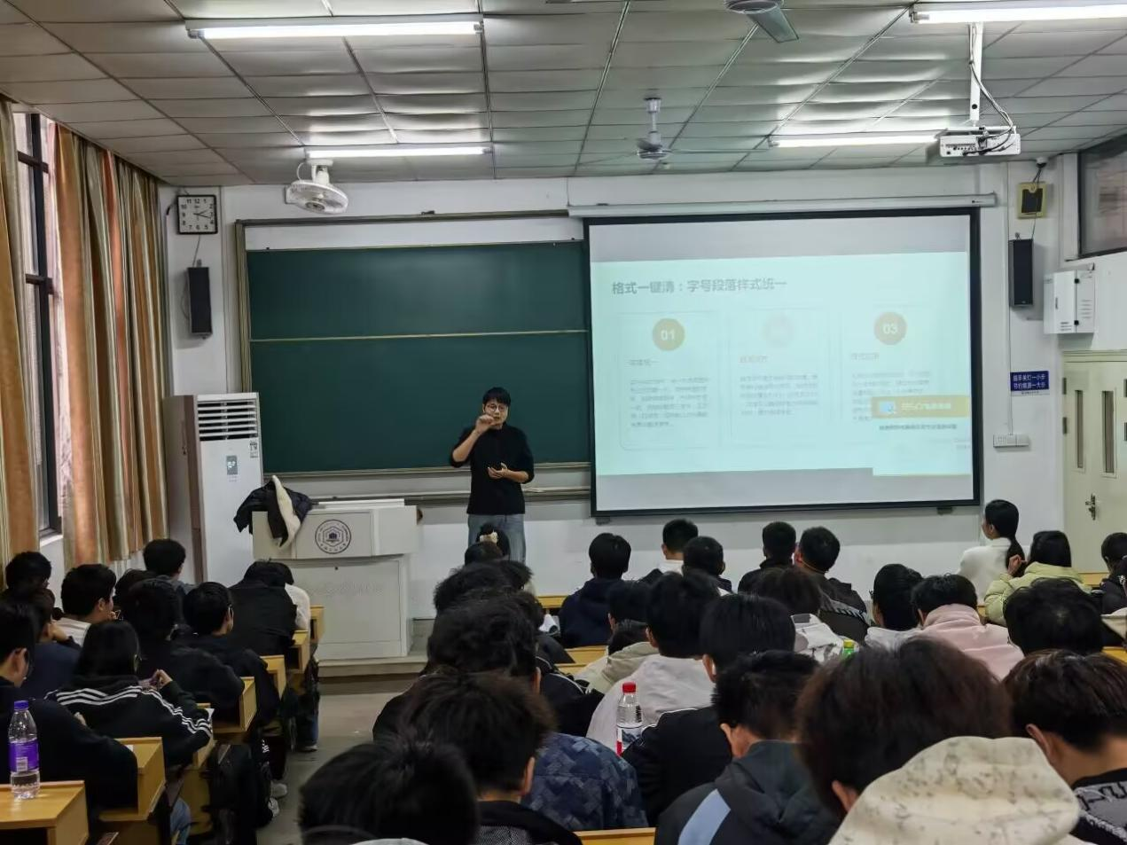 院团委副书记彭勇刚老师以“办公利器”为主题,聚焦高频工作场景,手把手演示Word标准化排版、Excel数据高效整理、PPT可视化制作等实操技巧,还系统梳理了通知、工作总结等常用文书的标准格式与写作框架,通过典型案例剖析常见误区,助力干事提升办公效率与文书质量。