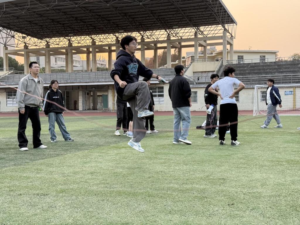 为深化培训实效,12月1日下午,学院学生会于本部操场开展“趣味协作、聚力同行”户外拓展活动,各部门干部全员参与。活动紧扣“协作、默契、凝聚力”核心,设置“五人六足”“蛇来运转”“摸石过河”等协作项目,考验团队成员的节奏同步与默契配合,各小组在整齐口号中协调步伐,现场笑声与加油声此起彼伏;“跳大绳”项目考验成员快速反应与互补配合能力,充分展现了学生干部队伍的活力与凝聚力。