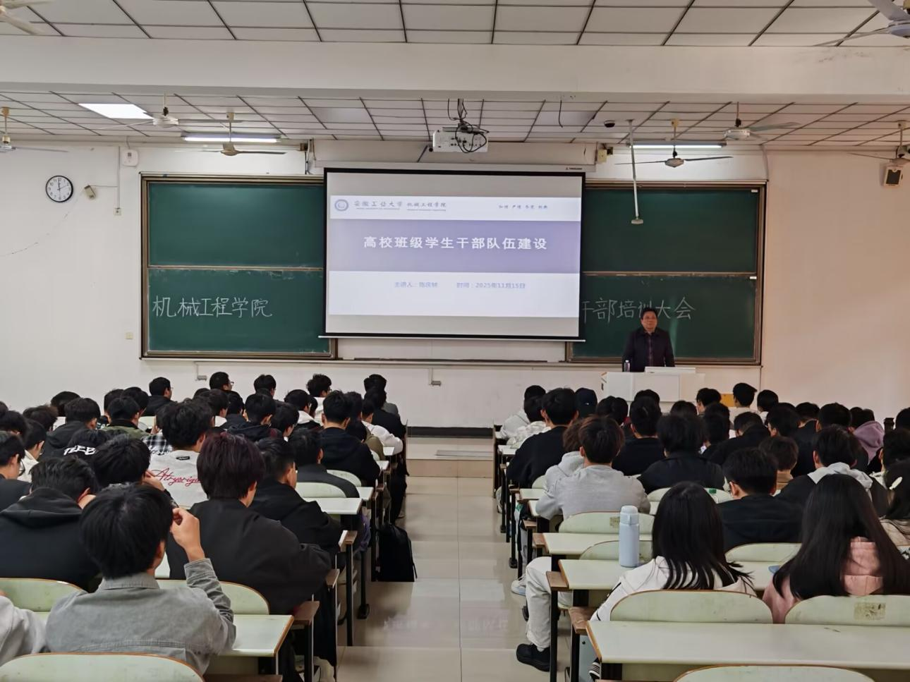 学院党委副书记、副院长陈庆林以“高校班级学生干部队伍建设”为题授课。他强调,学生干部既要锤炼业务“硬技能”,也要打磨沟通协调“软实力”,并针对班级凝聚力建设、优良学风培育、特色活动策划等核心工作提出具体要求,鼓励干部们勇于创新、主动作为,切实发挥桥梁纽带作用。