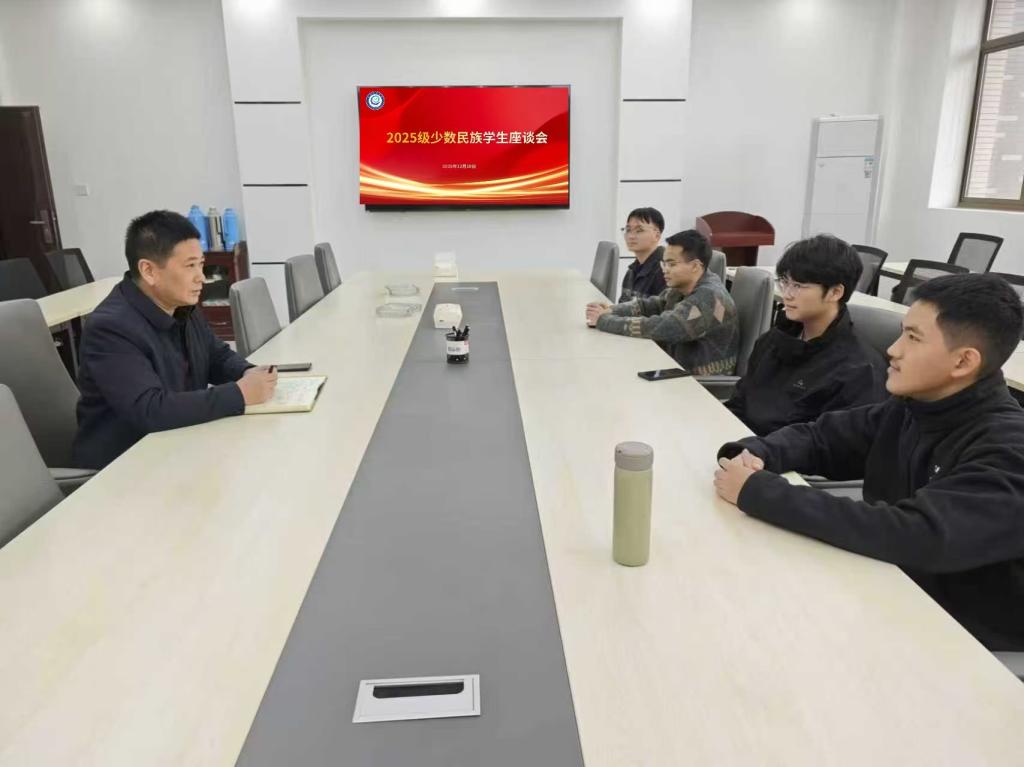 于机械楼 302 会议室召开 2025 级少数民族学生座谈会。院党委书记吴文兵与 2025 级少数民族本科生、研究生代表面对面交流,倾听学生心声,解决实际困难,凝聚成长力量。