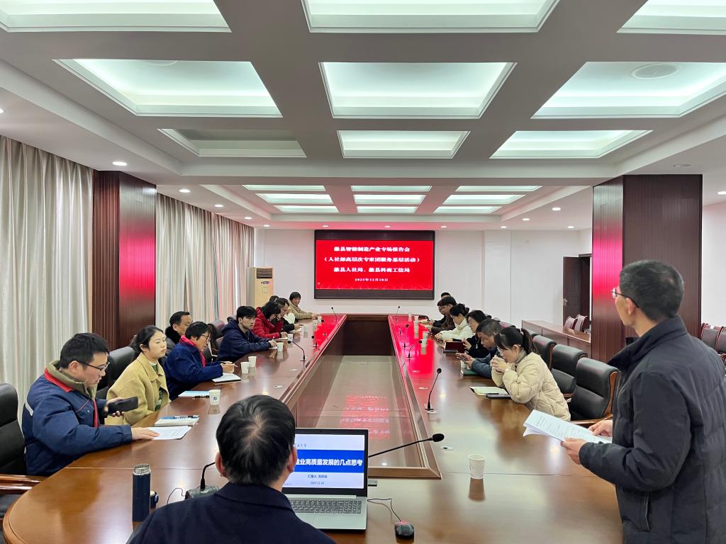 12月18日下午,安徽工业大学歙县智能装备制造技术研究院工作推进会在歙县经开区管委会召开。歙县县委常委、经开区党工委书记、管委会主任詹凯,管委会副主任潘利青,以及县委组织部、人社局、科商工信局等部门负责人出席。会上,研究院围绕2024-2025年度工作成果及下阶段规划作了系统汇报。双方就人才培养、技术攻关、成果转化等议题展开深入交流,明确了下一步深入合作的形式和重点等。吴文兵表示,研究院将继续发挥桥梁作用,推动高校智力资源与地方产业需求紧密对接,助力歙县智能制造产业升级。刘庆运强调,学院将依托研究院平台,深化产学研合作模式,共同培育适应区域发展的高素质工程人才。