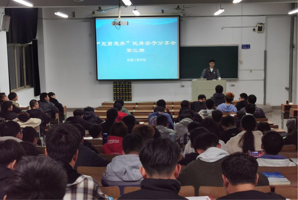 第三期“见贤思齐”优秀学子分享会于佳山校区教二303成功召开,我院优秀学子徐俊鹏与2021级车辆工程、机器人工程专业新生们分享交流了自己大学期间的学习生活的经验和感悟。