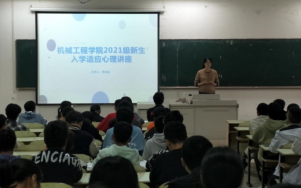 于佳山校区教三南103举办2021级新生入学适应心理讲座。讲座由院团委书记费白露老师主讲,新生辅导员、机械学院2021级各班心理委员、各宿舍长参加活动。