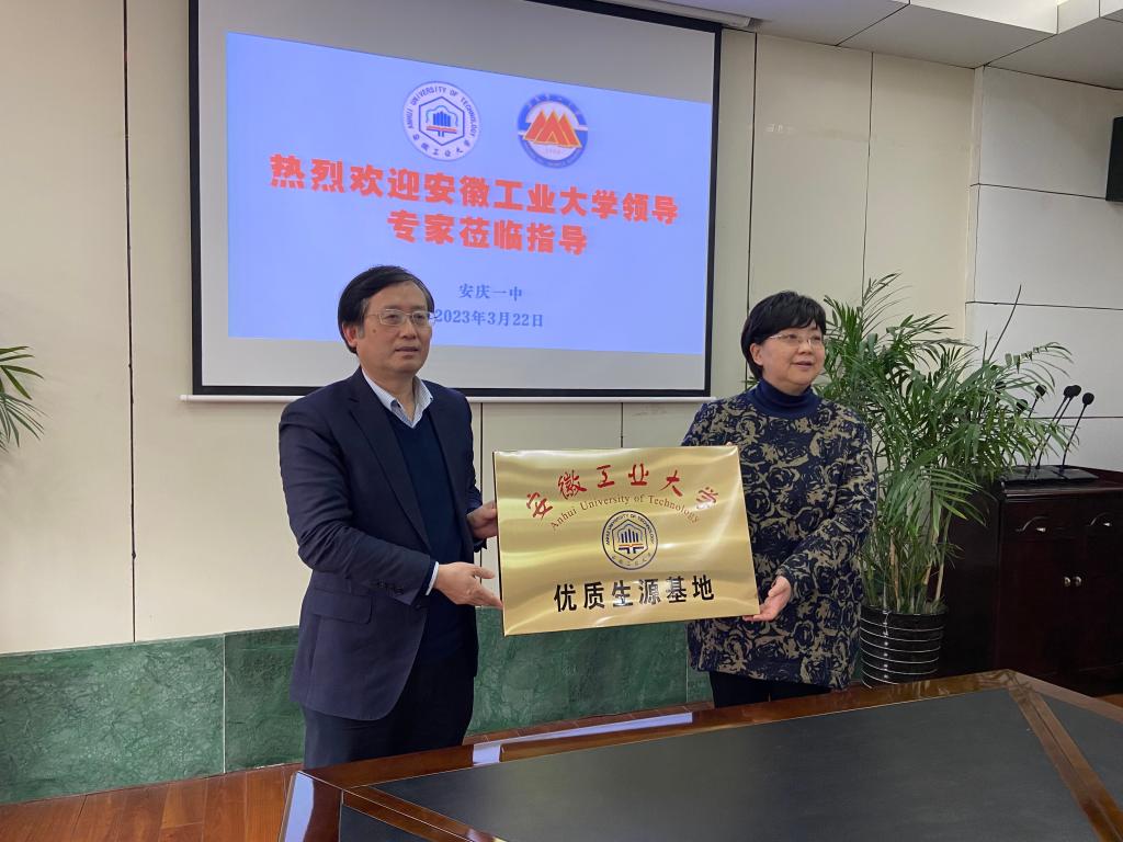 魏先文代表学校向安庆一中授予“安徽工业大学优质生源基地”牌匾,与安庆一中签署了优质生源基地建设合作协议,送上2021-2022学年度好色网