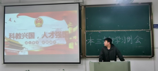 本科生第三党支部在机械楼405召开学习例会。支部全体成员出席会议,会议由组织委员张子强主持。
