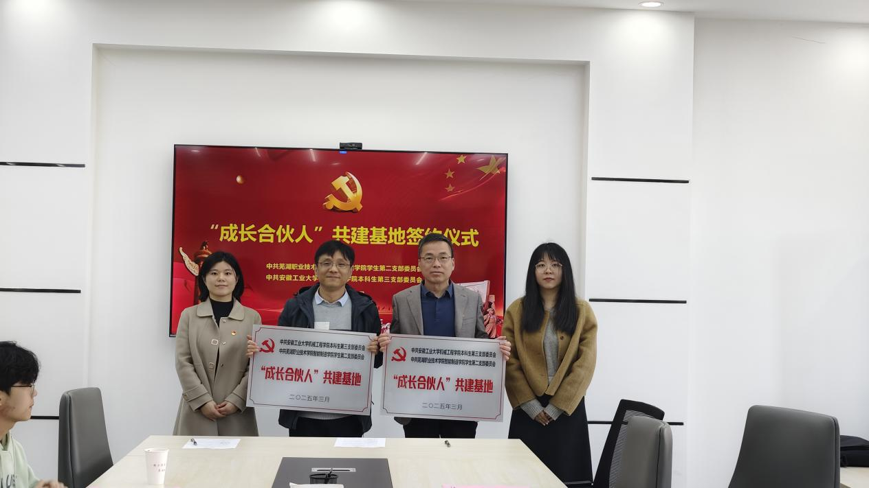 本科生第三党支部与芜湖职业技术学院智能制造学院学生第二党支部签署了《“成长合伙人”共建基地合作协议》,明确将在主题党日联办、党员教育共学、志愿服务同行等方面深化合作。