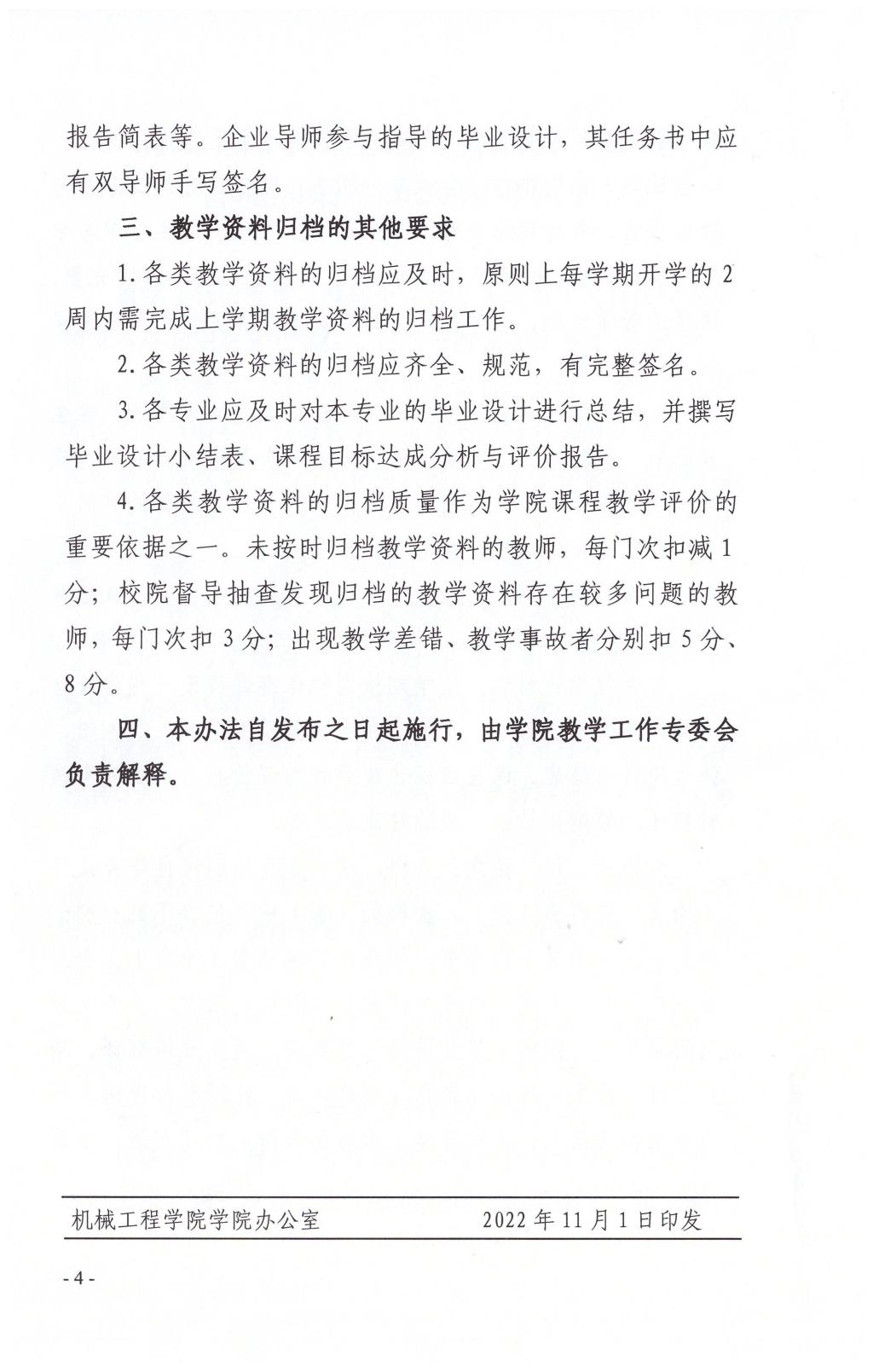关于印发《机械工程学院理论与实践教学资料归档管理细则(2022修订版)》的通知